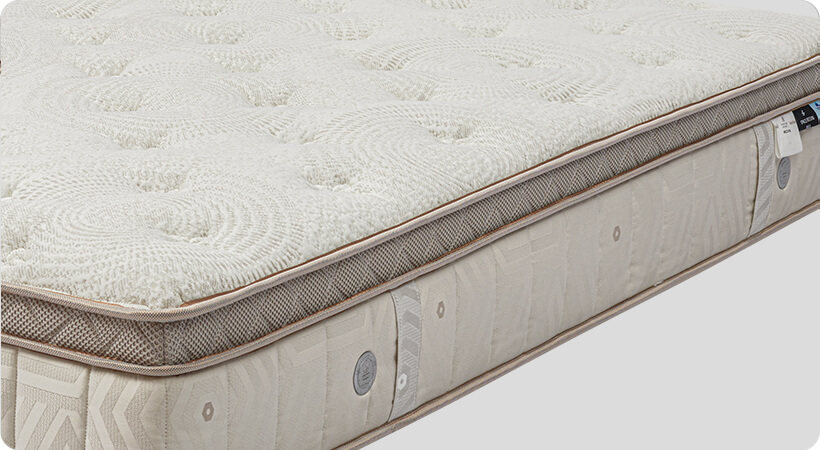 81个波点太空树脂球+约2150个蛋形波浪绵将床垫 舒适层划分成不同舒缓程度的三区五段设计,根据 身体不同部位匹配相应轻微指压按摩触感。