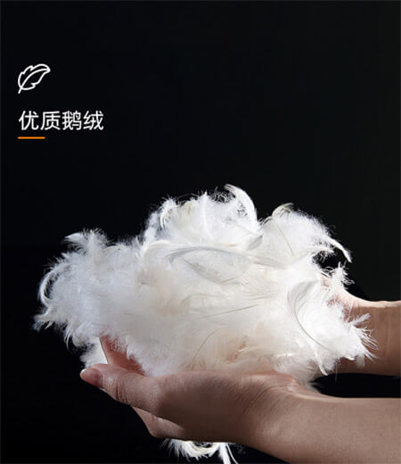 臻选东北白鹅绒,轻盈保暖,恒温蓄热,羽绒多孔结构能存储大量静止空气,防止外界冷空气和身体接触,达到保暖的效果且透气舒适无“闷热感”。